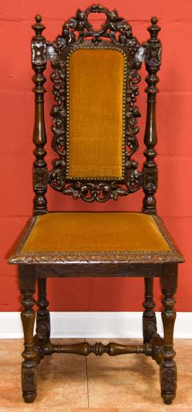 Set of Six Antique French Carved Oak Dining Chairs with Grape Vine Carving
