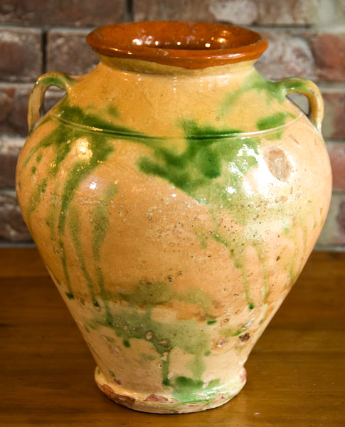 Antique Provencal Confit Pot Unusual Shape and Color (Browns, Greens, Golds)