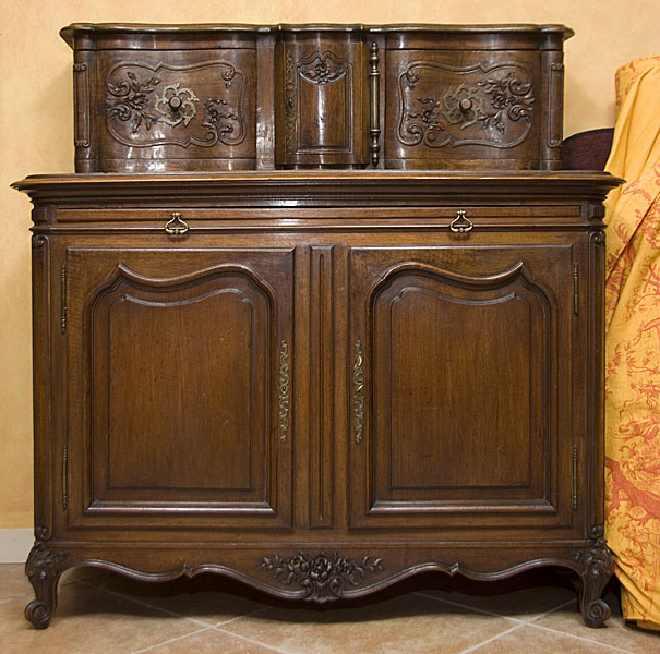 Antique French Walnut Glissant with Serving Slide & Flower Carvings
