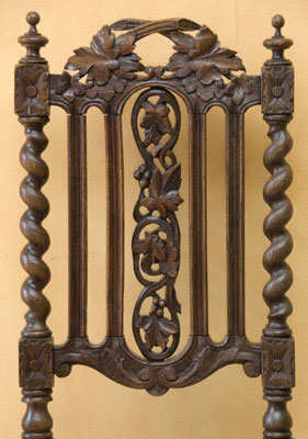 Set of Six 19th Century Carved Dining Chairs with Grapes & Leaves & Carved Seats