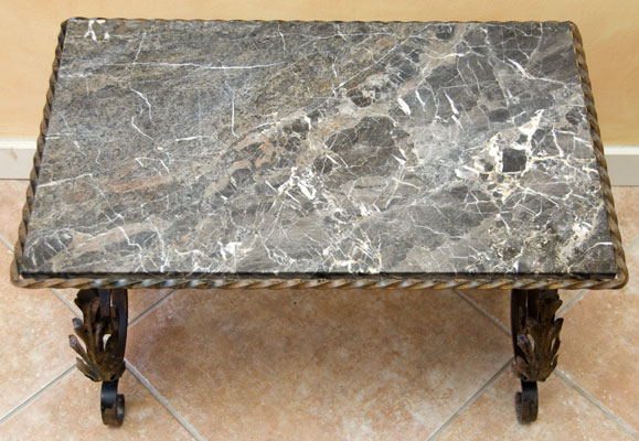 Old French Wrought Iron Coffee Table with Original Marble Top
