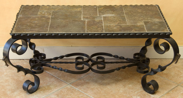 Old French Wrought Iron Base Coffee Table with Slate Top circa 1930
