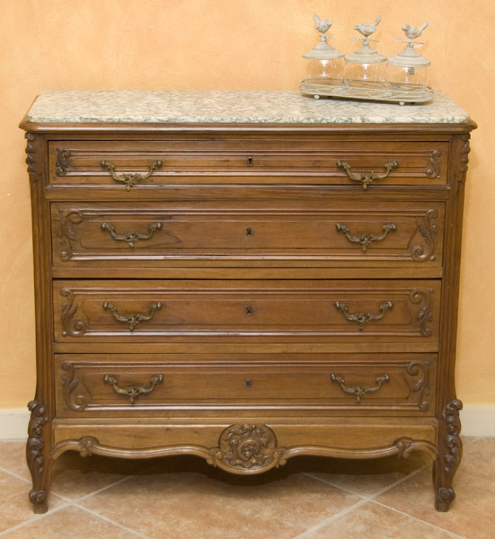 Antique French Walnut Commode with Original Marble Top
