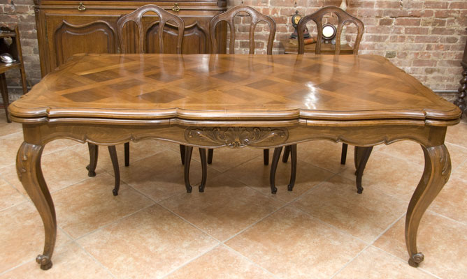Walnut Parquet Top Extender Dining Table
