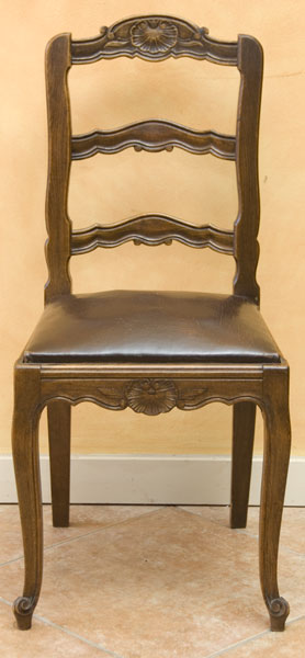 Eight Walnut Chairs with Leather Seats 16 1/2" D 17 1/2" W 37" H