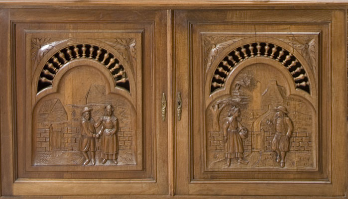 Antique French Chestnut Buffet a deux Corps from Brittany with wonderful carving