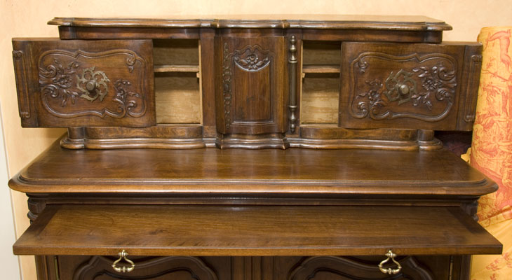Antique French Walnut Glissant with Serving Slide & Flower Carvings