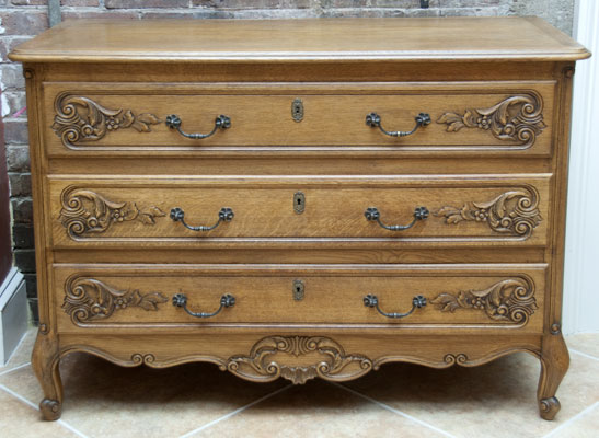Old French Oak Three Drawer Carved Commode