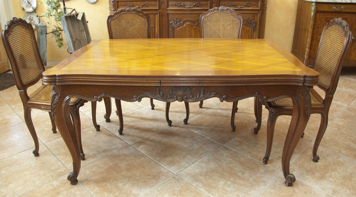 Antique French Walnut Parquet Top Dining Table