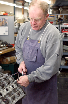 Phil lives in Corte Madera with his wife and five cats. He's been with the company for 29 years as an engine builder and a Cosworth DFV specialist. Before that he spent five years with Joe Huffaker Sr., then another five years (1975-1980) with the Griswold Company, learning about vintage cars.